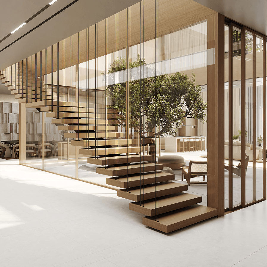 This project was conceived as a serene escape in the heart of Dubai. With a plot area of 1200 sqm and a built up area of 635 sqm, the design embraces minimalism, natural light, and warm textures to create a peaceful contemporary home.